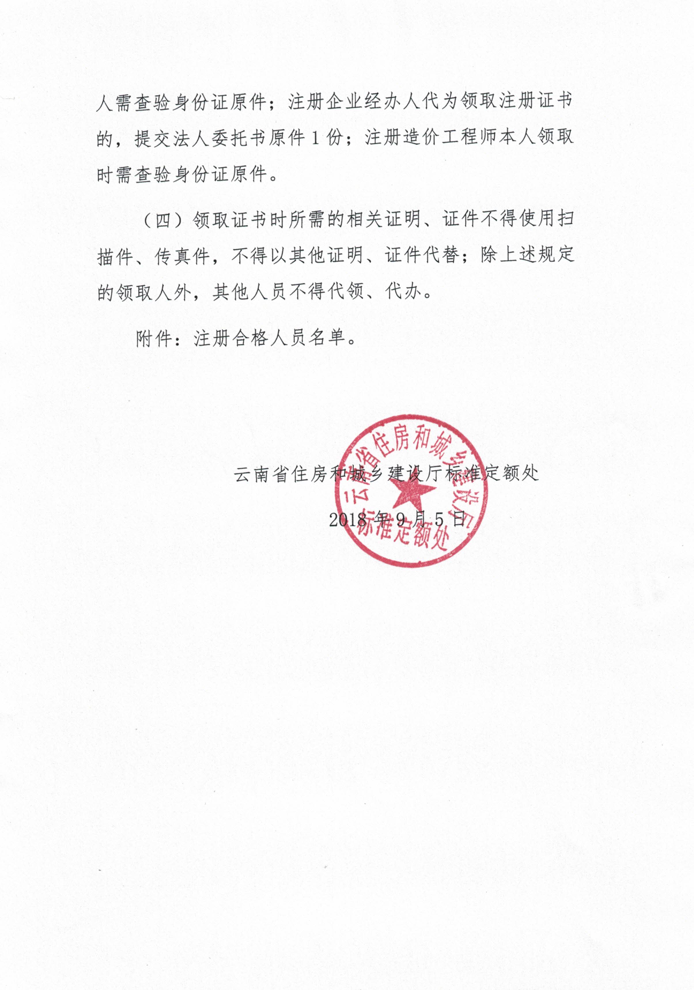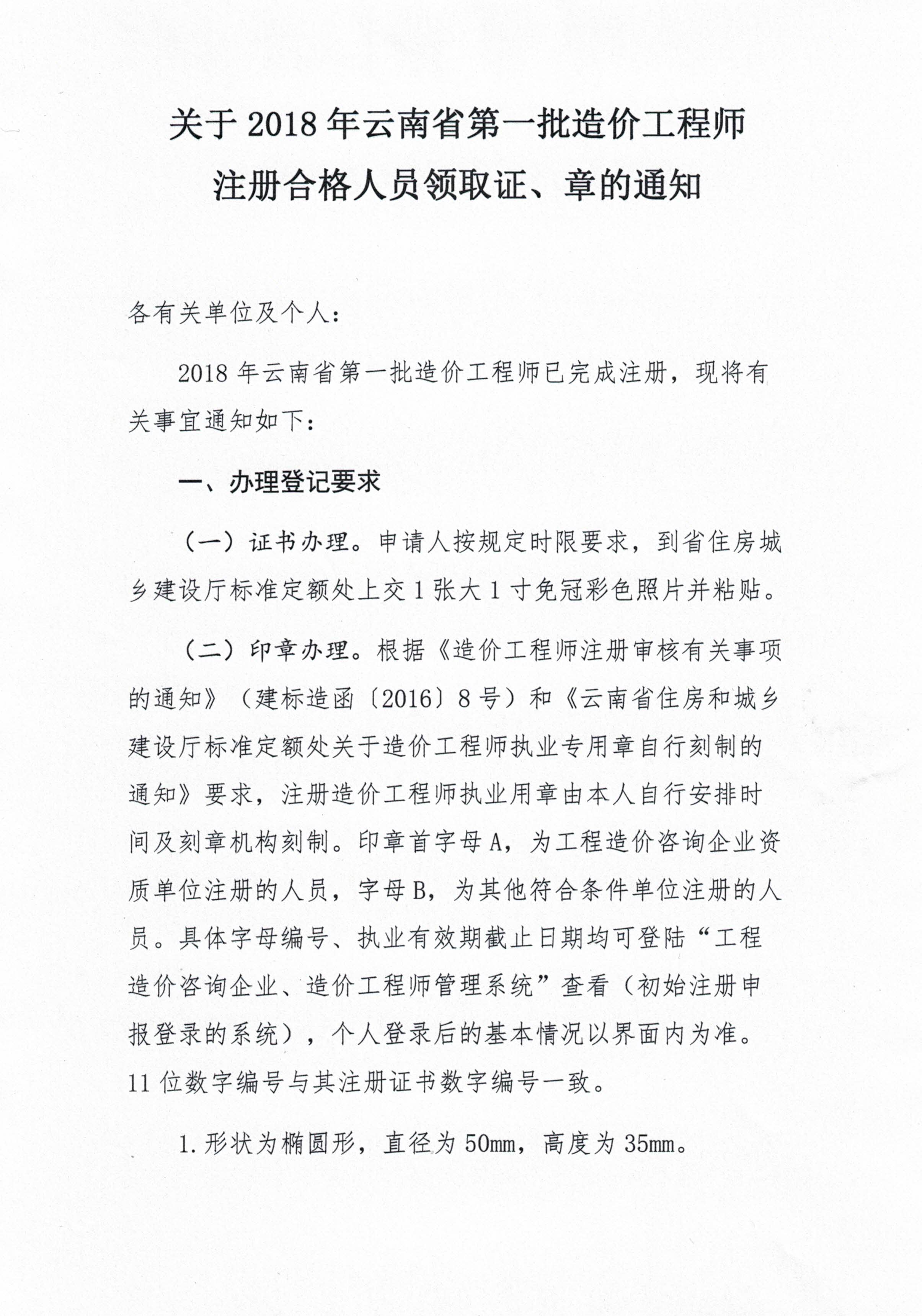 关于2018年云南省第一批造价工程师注册合格人员领取证、章的通知
