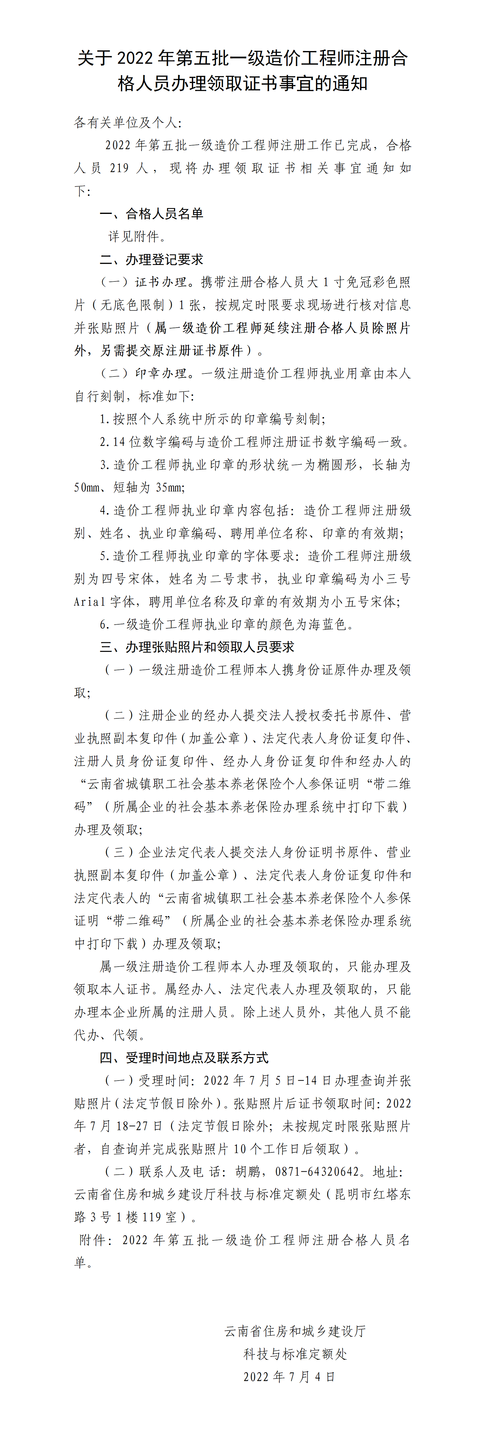 关于2022年第五批一级造价工程师注册合格人员办理领取证书事宜的通知