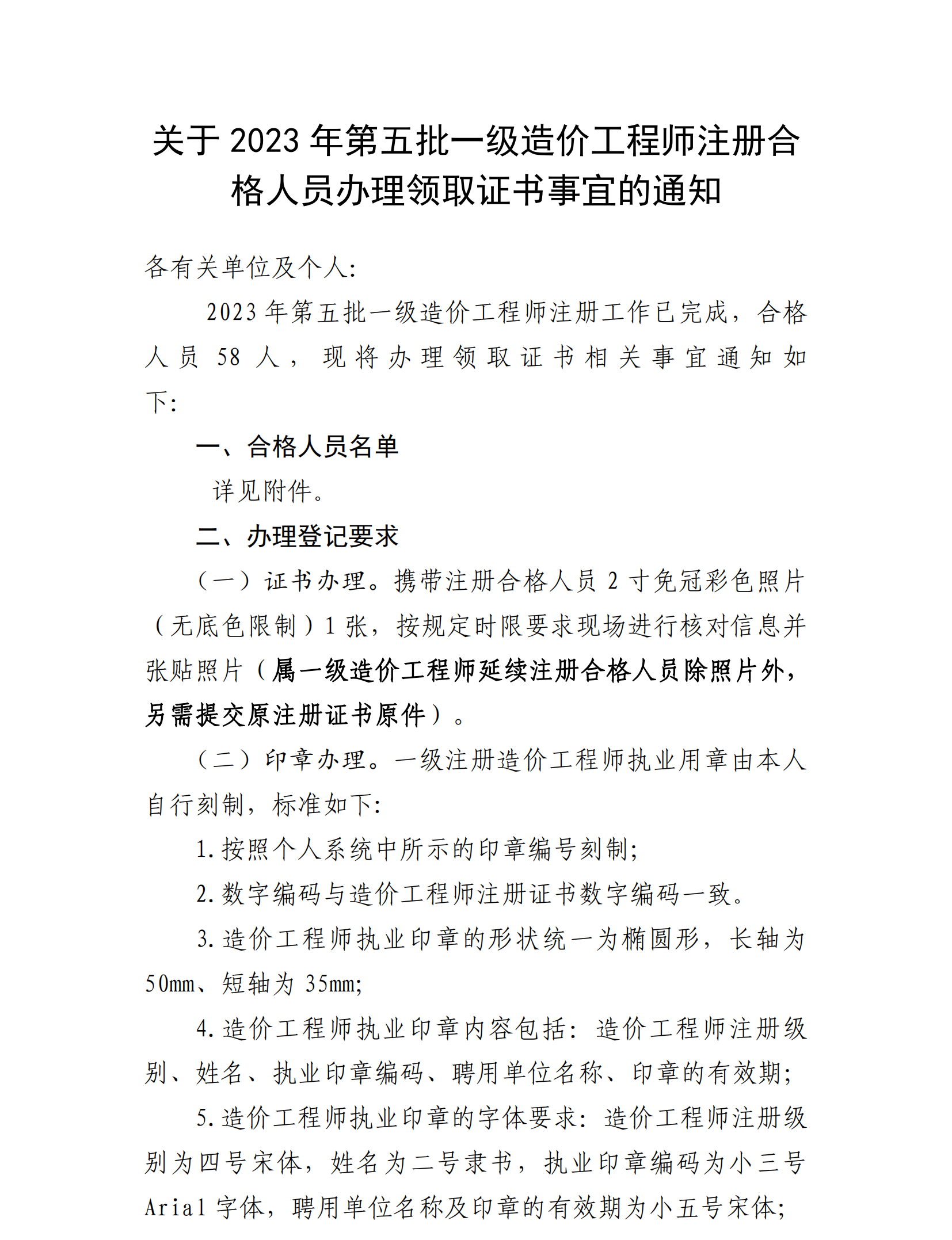关于2023年第五批一级造价工程师注册合格人员办理领取证书事宜的通知