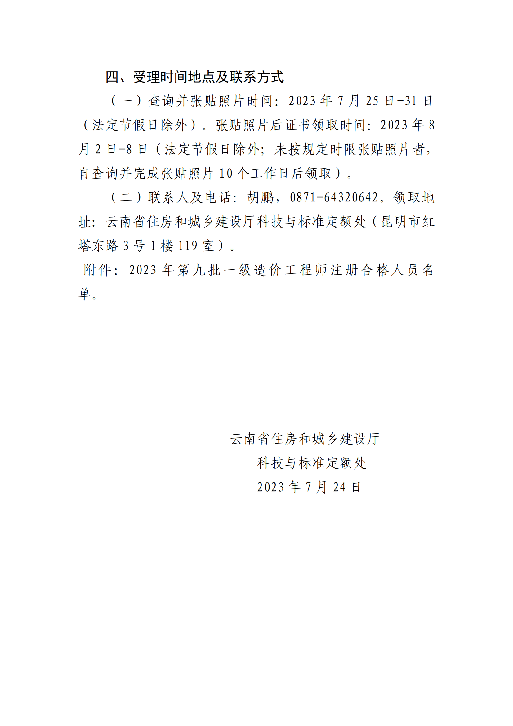 附件:2023年第九批一级造价工程师注册合格人员名单。