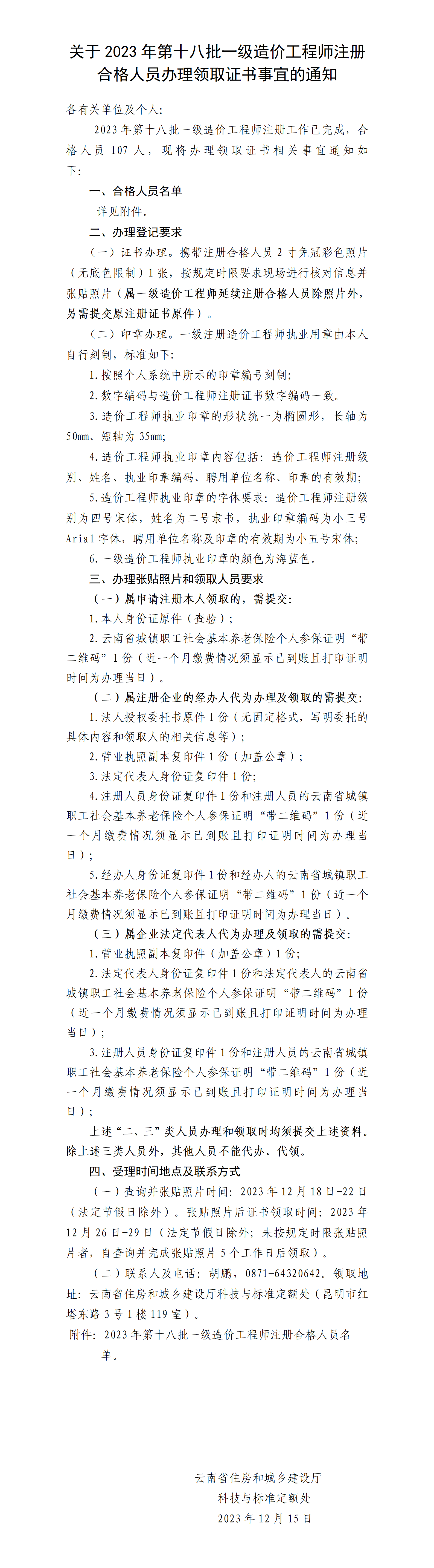关于2023年第十八批一级造价工程师注册合格人员办理领取证书事宜的通知