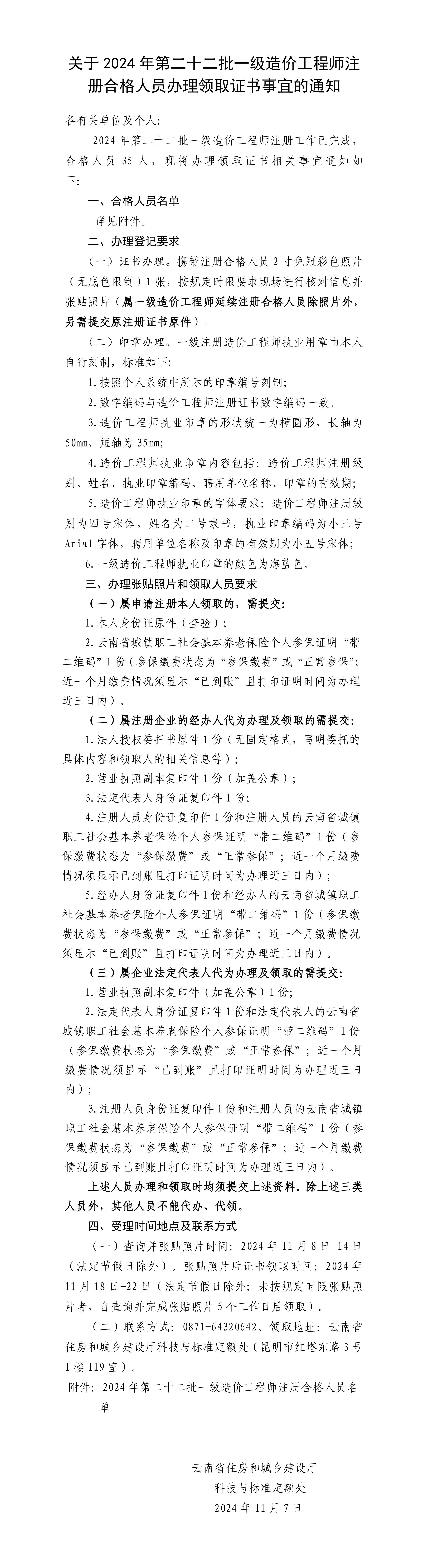 关于2024年第二十二批一级注册造价工程师合格人员办理领取证书的通知