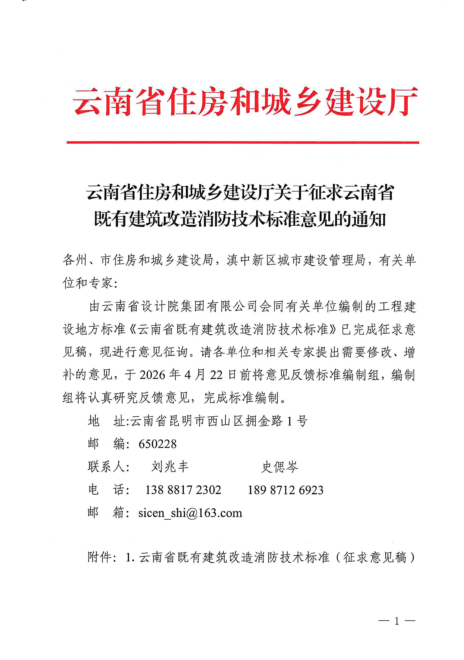 附件:1.云南省既有建筑改造消防技术标准(征求意见稿).docx